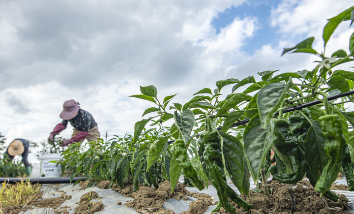 2026年2月3日,海南省琼海市塔洋镇农民在采收辣椒。新华社发(蒙钟德 摄)