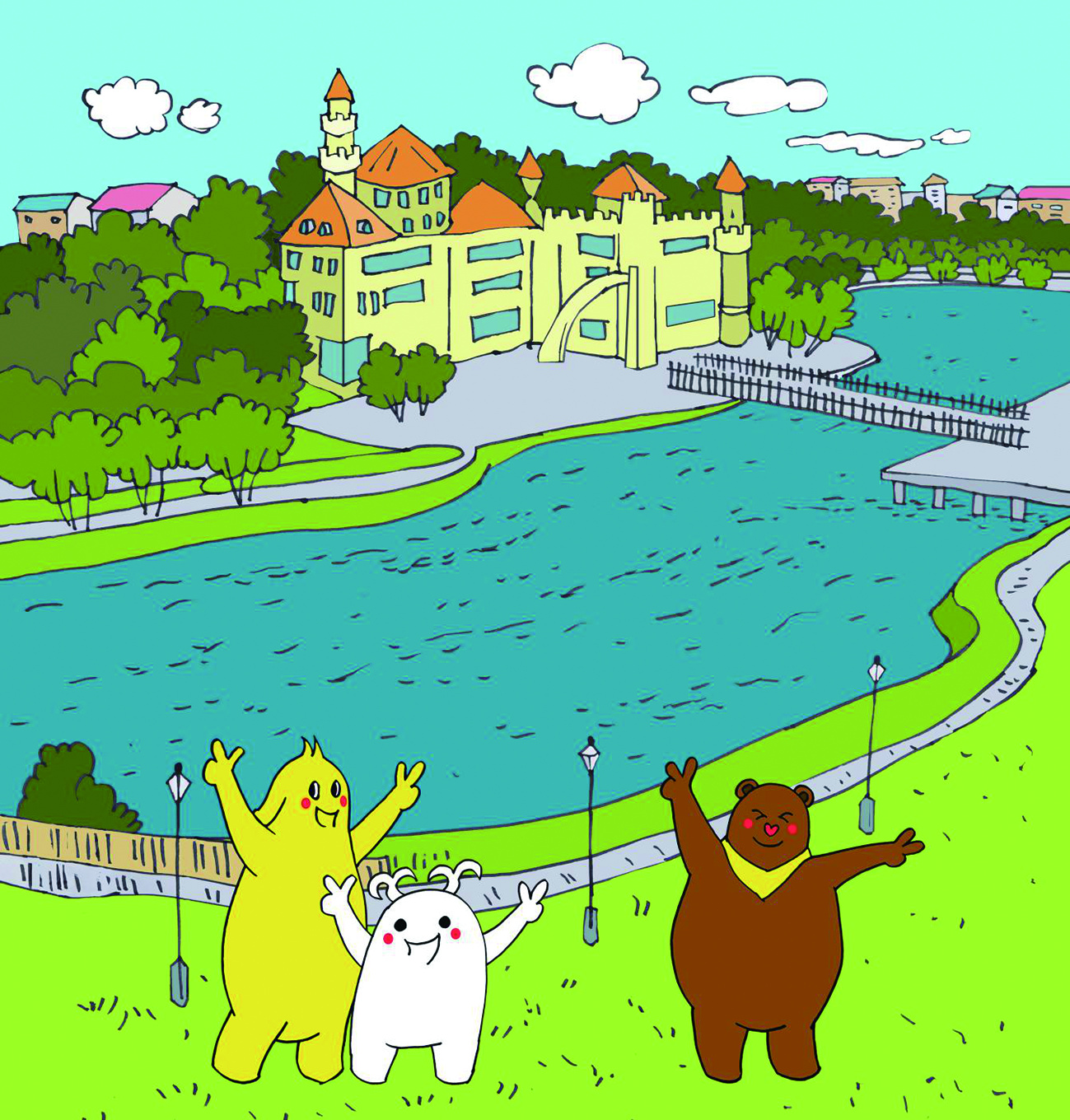 57 布布、津津和小津灵等待着更多人来到童话边城,带大家去了解更多的美景和故事。