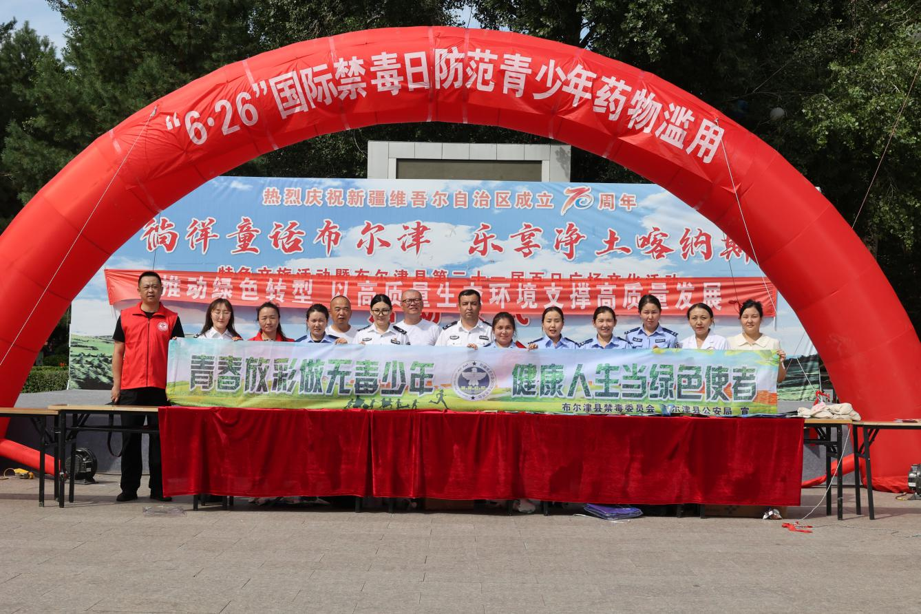 6月24日,布尔津县公安局禁毒部门组织各成员单位在县街心公园开展了以“防范青少年药物滥用”为主题的禁毒宣传活动,吸引了众多群众及青少年踊跃参与。