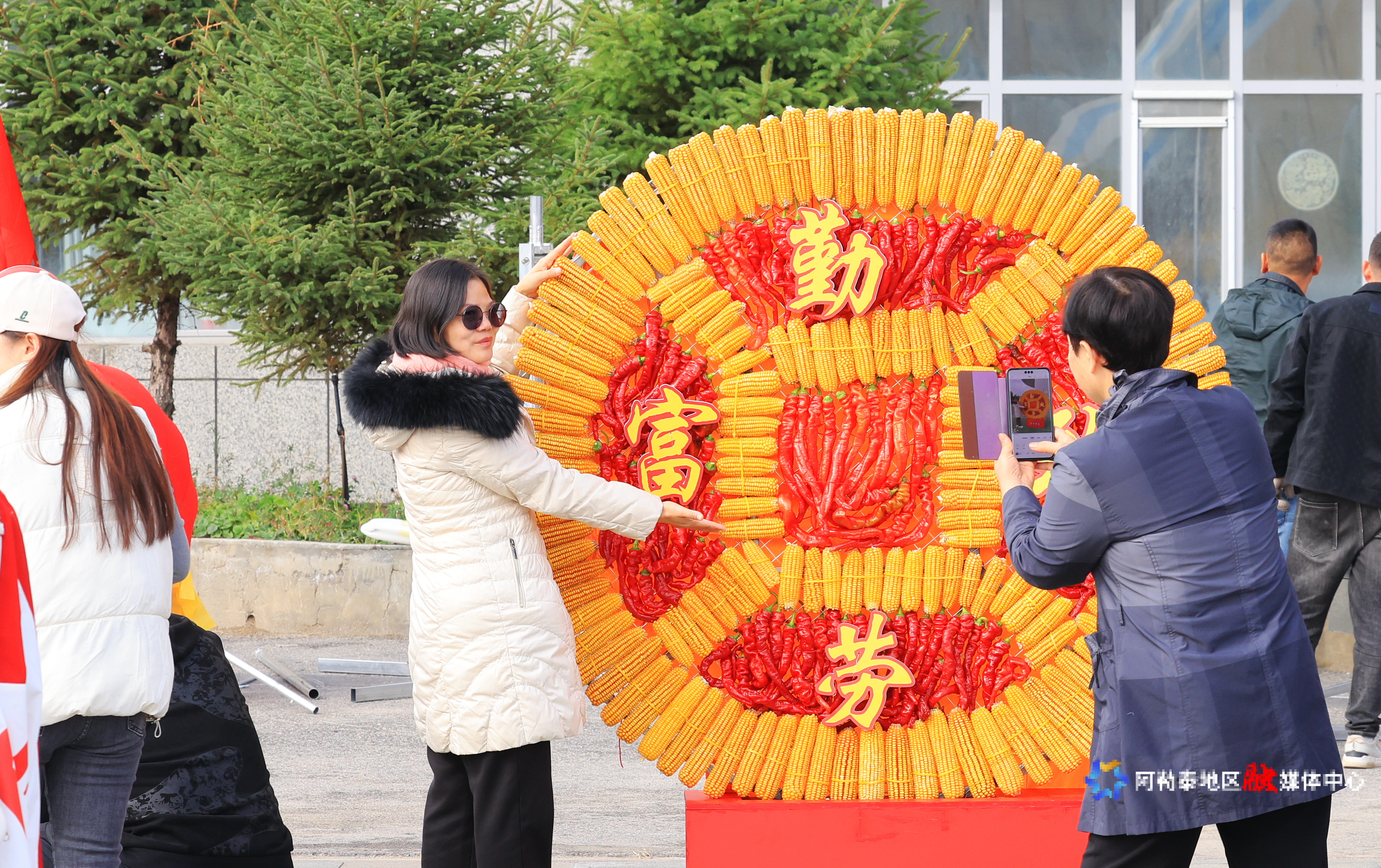 当天,地区体育馆广场热闹非凡。舞台上,各族群众身着特色服饰,歌舞表演轮番上演;展区内,香甜的瓜果、鲜嫩的牛羊肉与精致的手工艺品错落陈列,展示着全年的丰硕成果;美食区内,烤全羊、烤鱼的鲜香弥漫,诱人香气引得食客纷纷驻足。