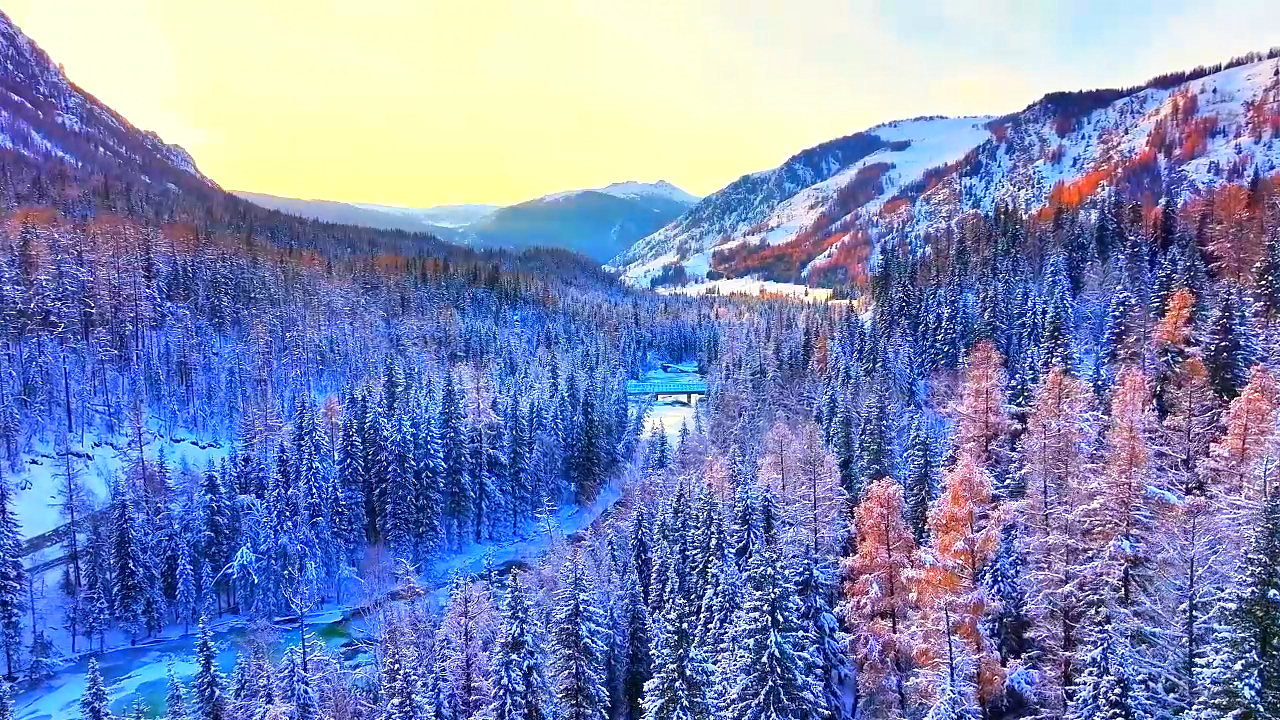 雪山为幕、彩林作毯,冰河绕出独属阿禾的冬日曲线。