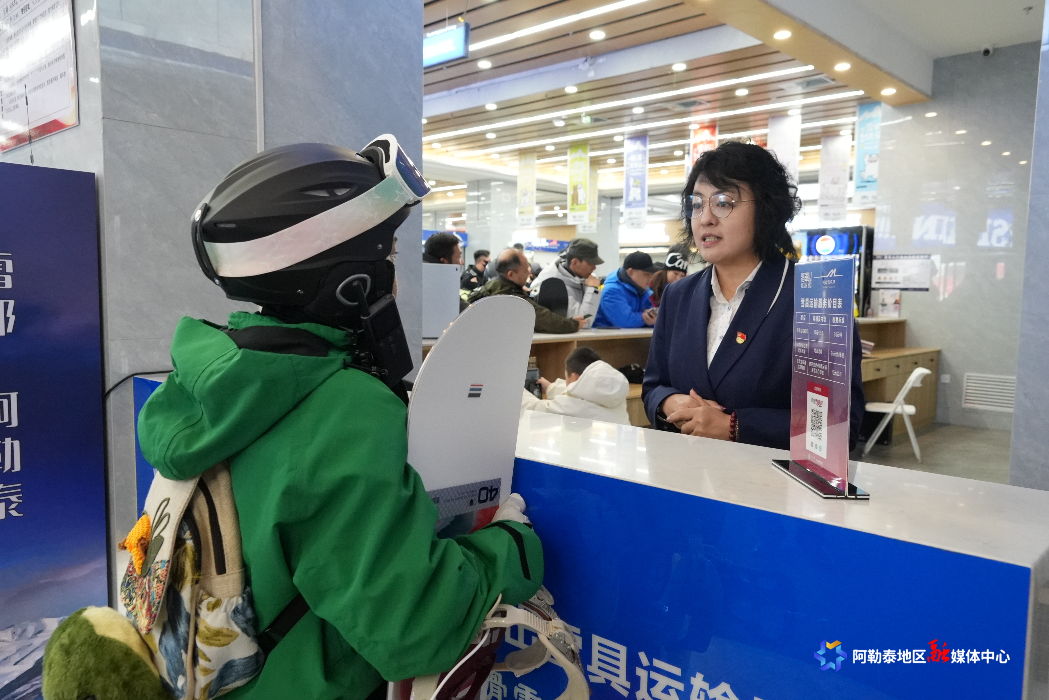 近日,阿勒泰雪都机场联合阿勒泰将军山国际滑雪度假区推出专属雪具运输服务,为全国雪友打造“轻装上阵、畅滑无忧”的冰雪旅游新体验。实习记者 包洪宇摄