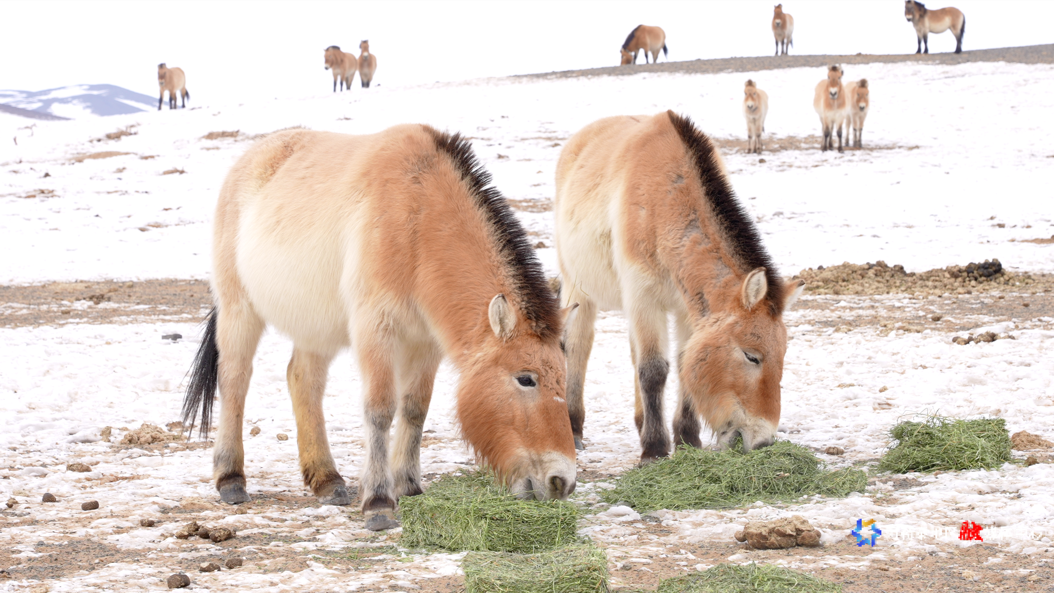 富蕴县民辅警在卡拉麦里投喂北山羊,警民守护下,这里的“精灵”与人类早已成为彼此信赖的伙伴。