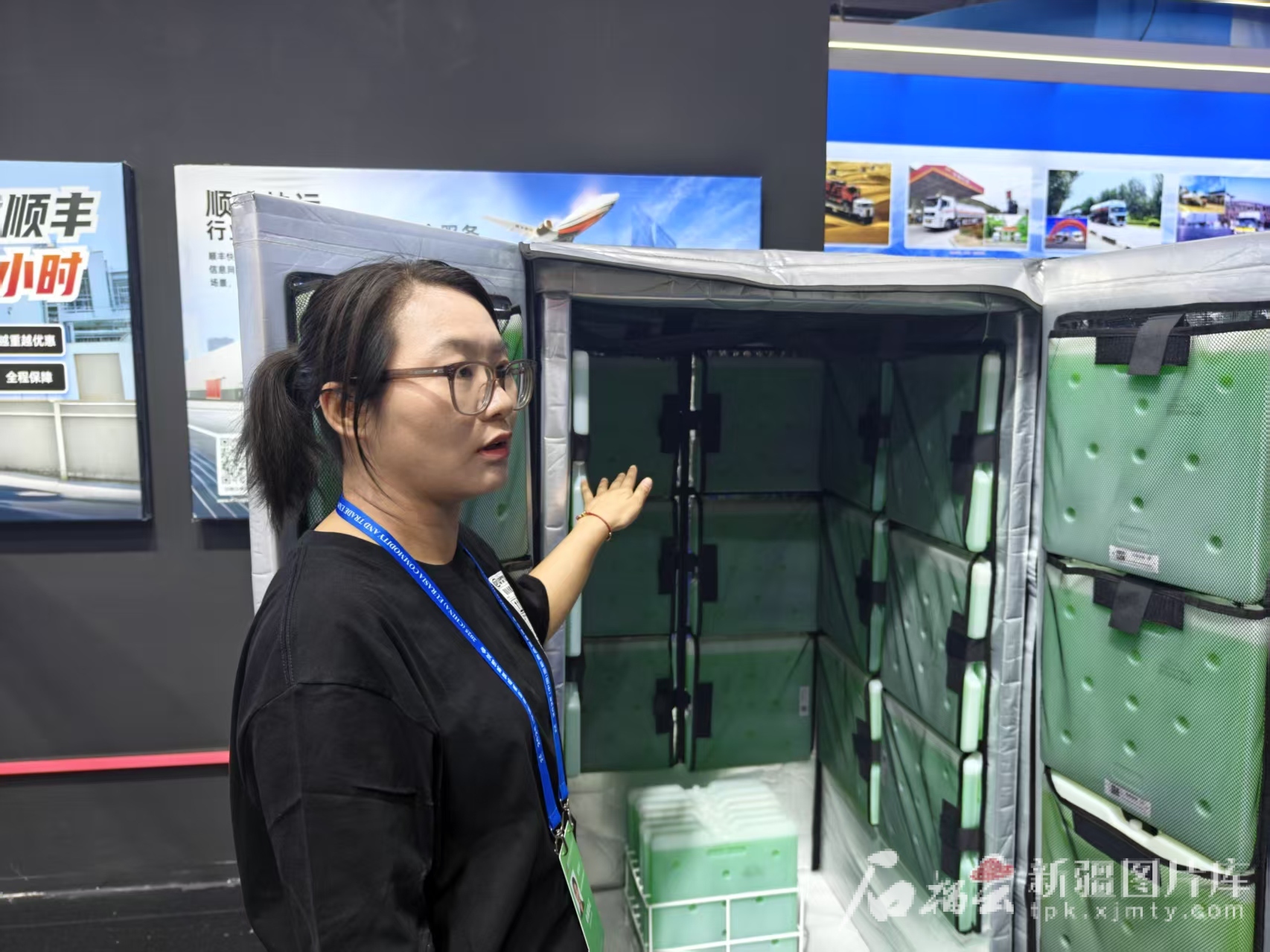 6月26日,新疆顺丰速运有限公司展厅工作人员在介绍冰笼。天山网-新疆日报记者 范琼燕摄