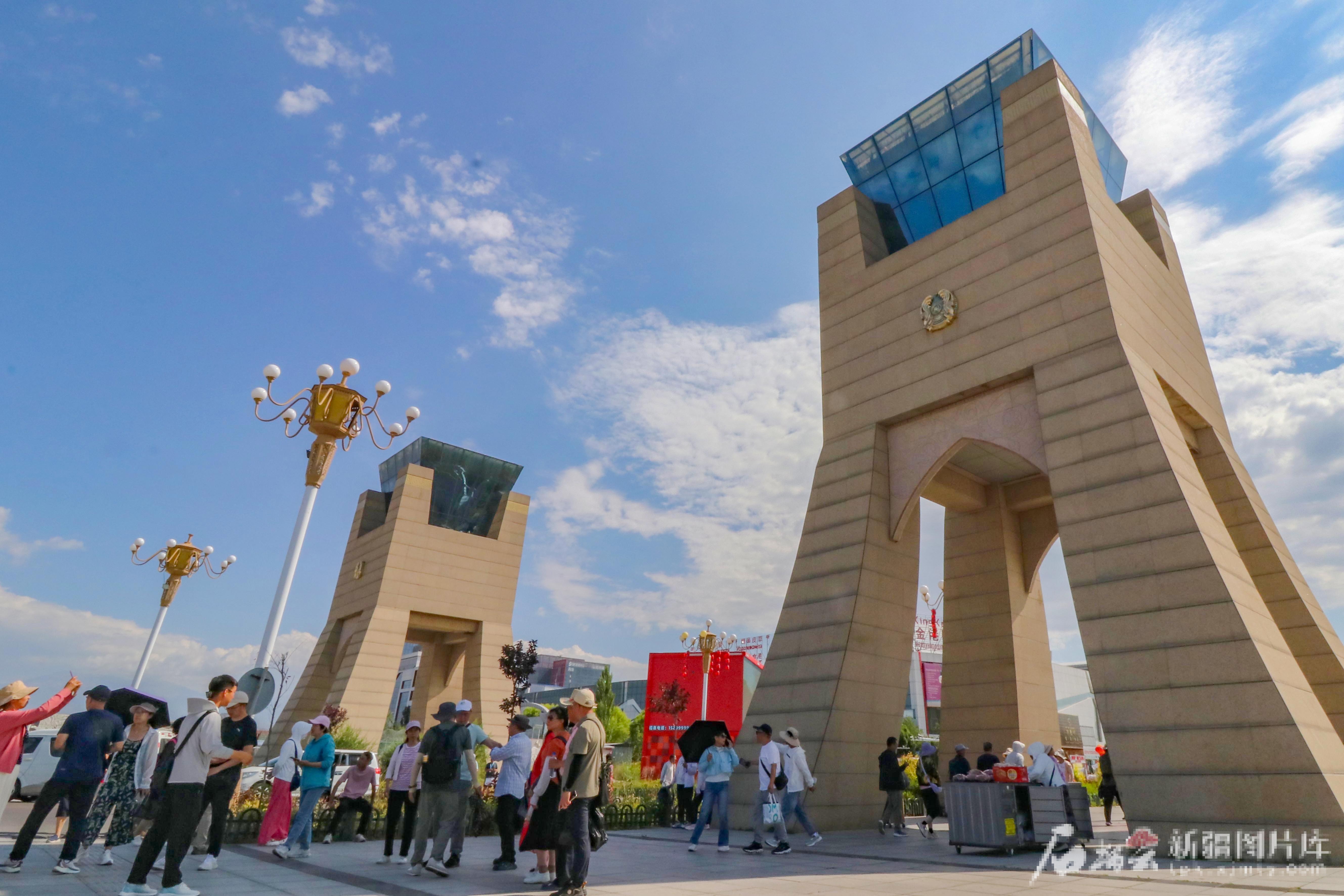 7月3日,游客在中哈霍尔果斯国际边境合作中心参观游览。冯海森摄