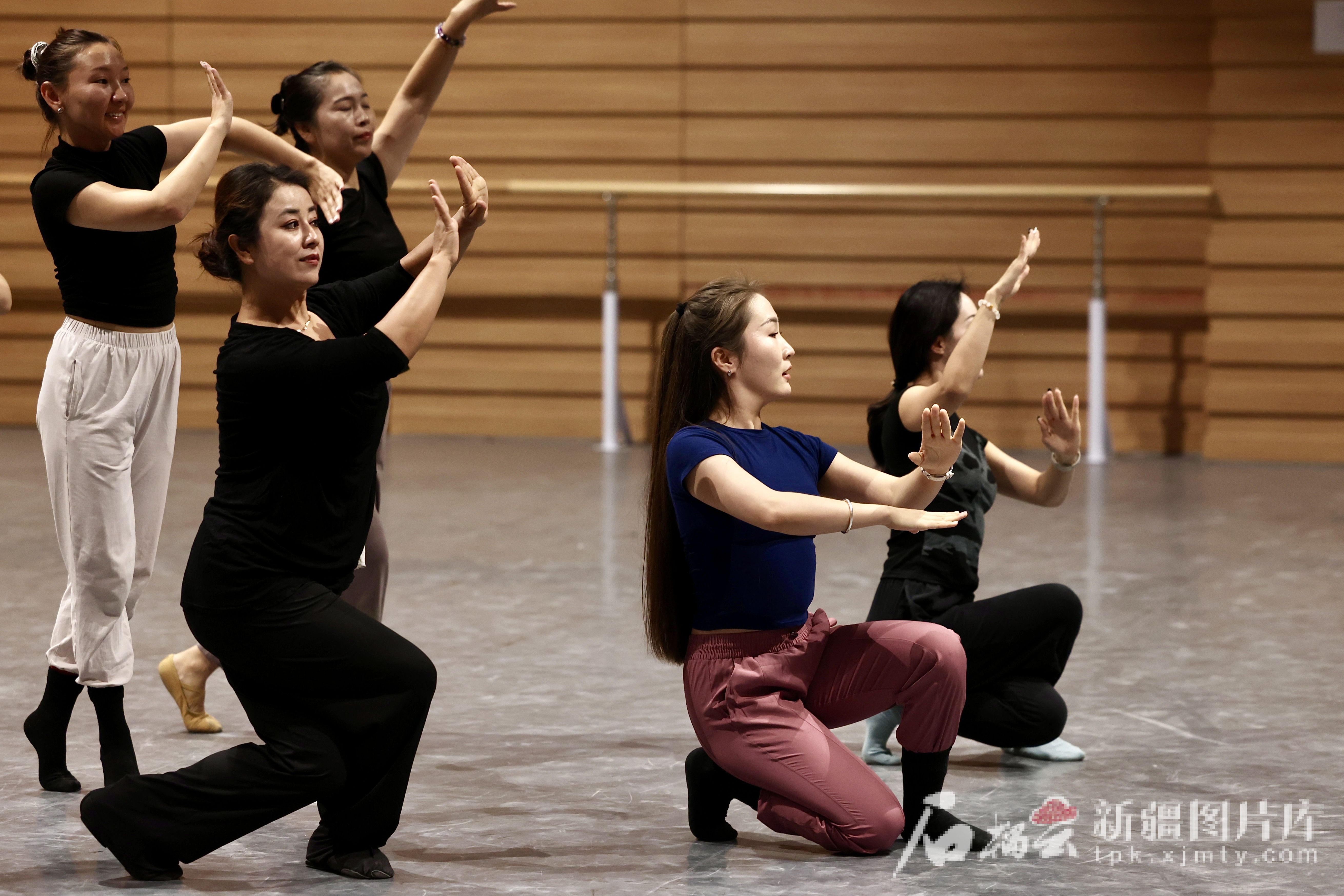 8月15日,博州歌舞团演员正在排练舞蹈。