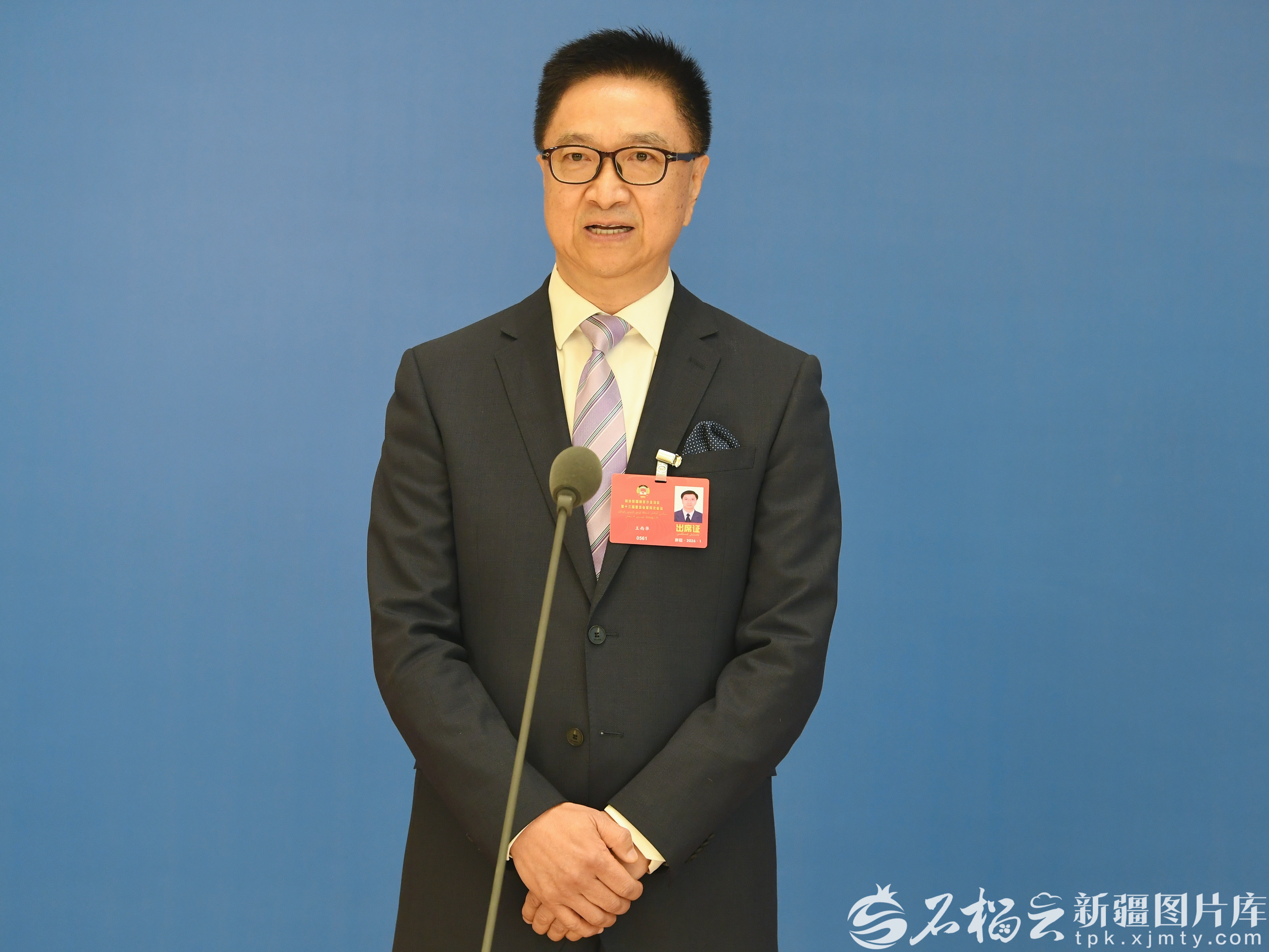 李保强委员答记者问。石榴云/新疆日报记者约提克尔·尼加提摄